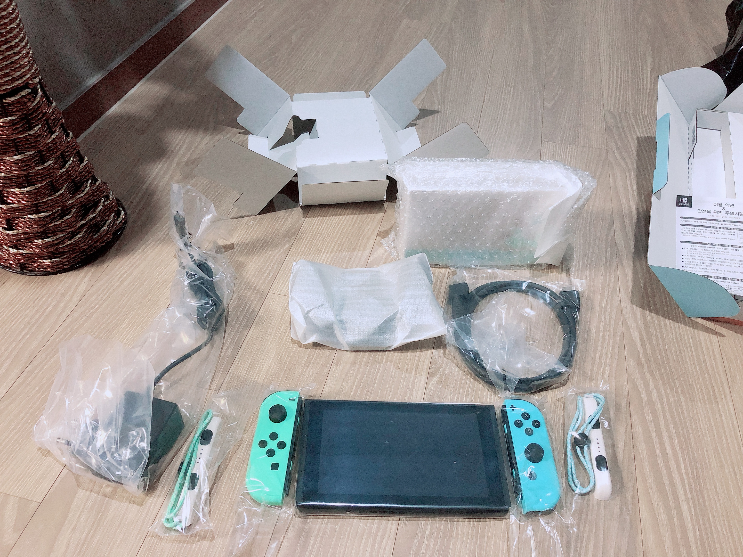 서론이 길었다. 서론이라기 보다는 스위치를 충동적으로 구매한 것에 대한 변이나 핑계에 가까웠지만 아무튼 닌텐도 스위치 동물의 숲 에디션 포켓몬 소드 실드 인질팩의 언박싱을 시작해보자.