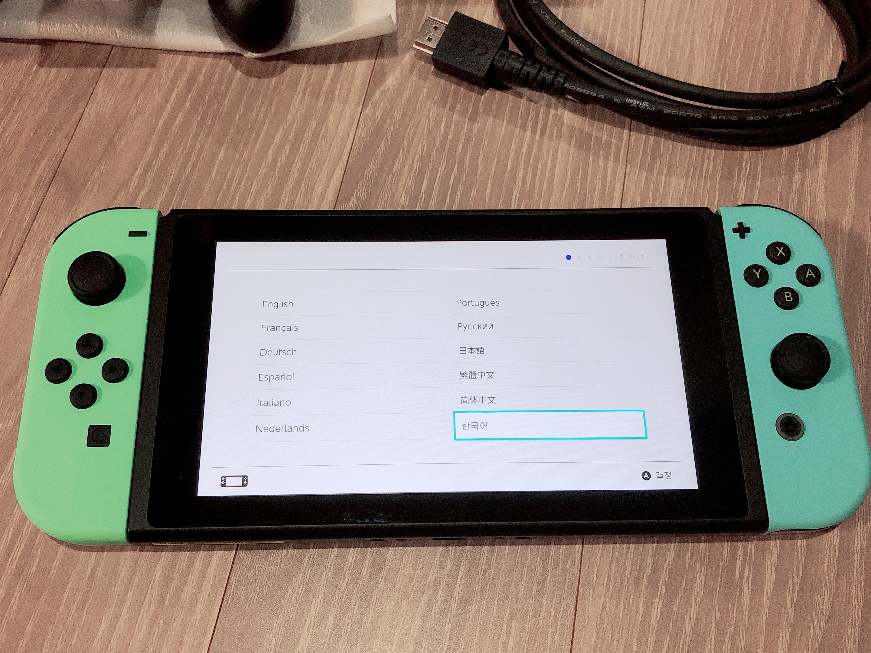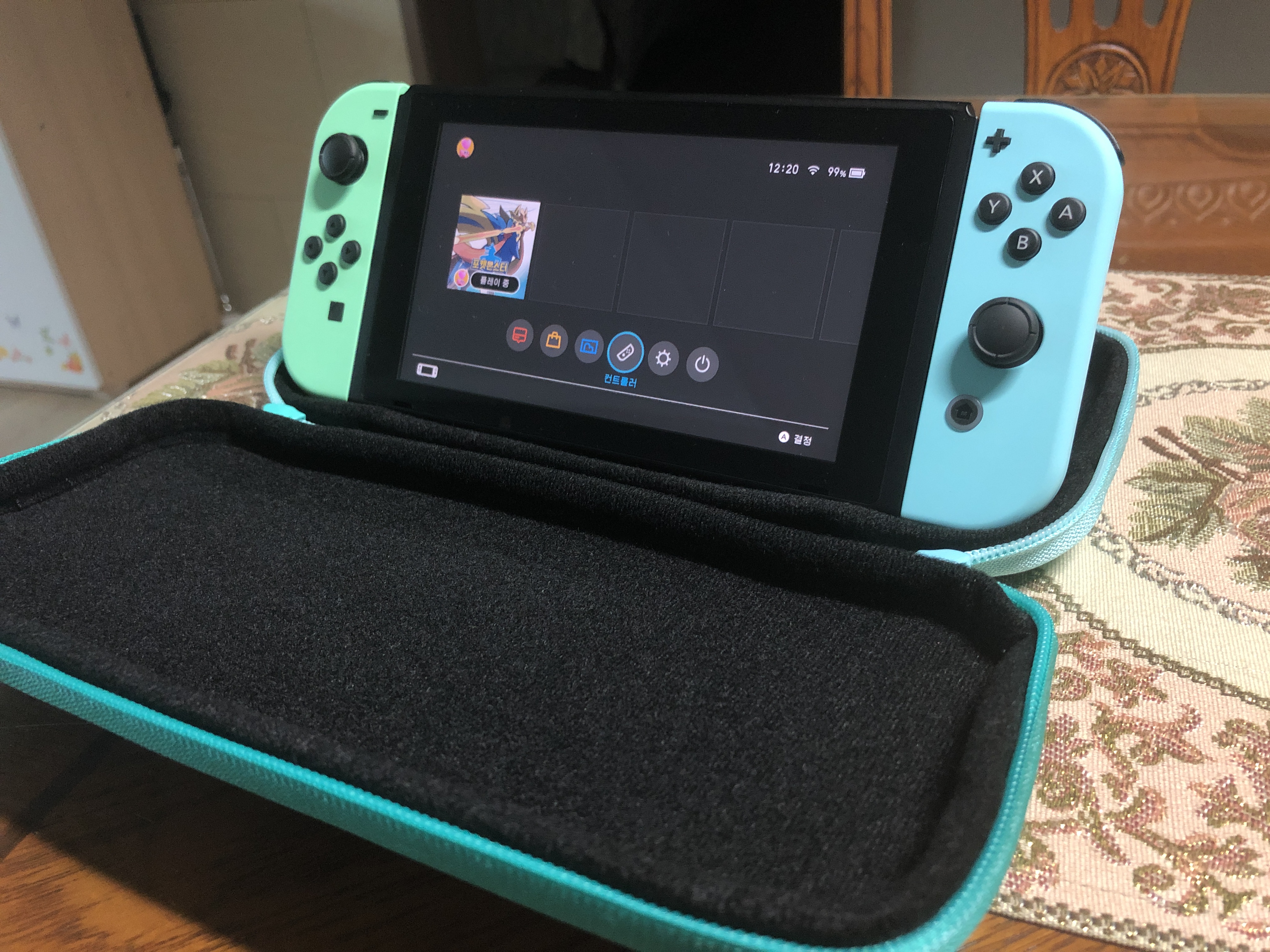 조이콘을 본체에 연결한 모습이다. 사실 네온 색상을 정가에 구입할 기회가 있었으나 이 동숲 에디션의 파스텔 컬러톤이 너무 마음에 들어서 네온을 포기하고 좀더 기다리다가 이 동숲 에디션을 구매하게 되었다. 지금 생각해봐도 후회가 없는 선택이라는 생각이 들게 만드는 색감이다.