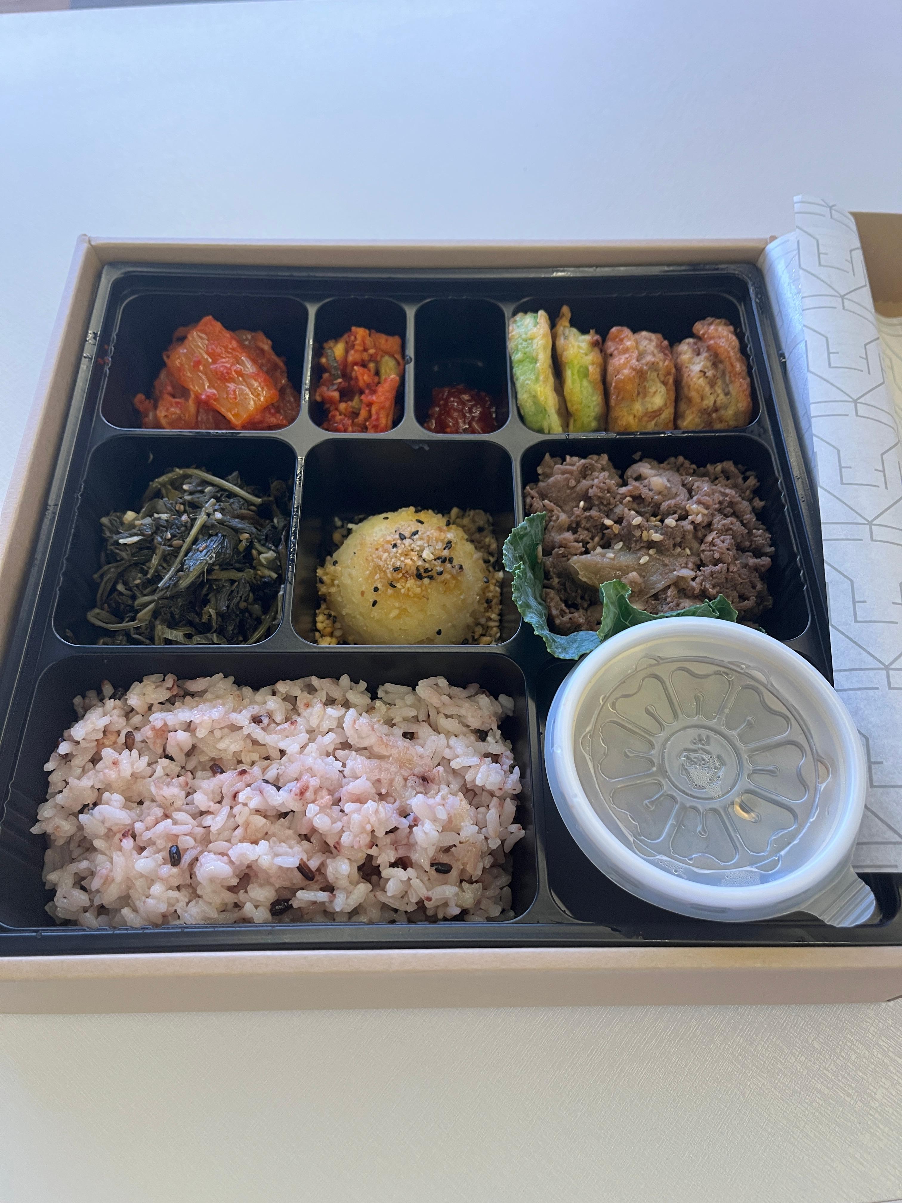 그리고 특히 밥이 맛있었다. 나는 고작 5000원만 냈을 뿐인데 이리 황송히 대접해주시다니. 불고기가 살짝 단것 빼고는 구성과 맛, 흠잡을때 없었다. 안에 물티슈와 구취제거용(?)폴로사탕도 들어있어서 어떤 분이 의뢰를 맡겼는지는 모르겠지만 아주 센스있었다. 세션이 취소된거에 한층 뿔나있던 전부 수그러들었다. 완전 선녀인 이번 밋업!