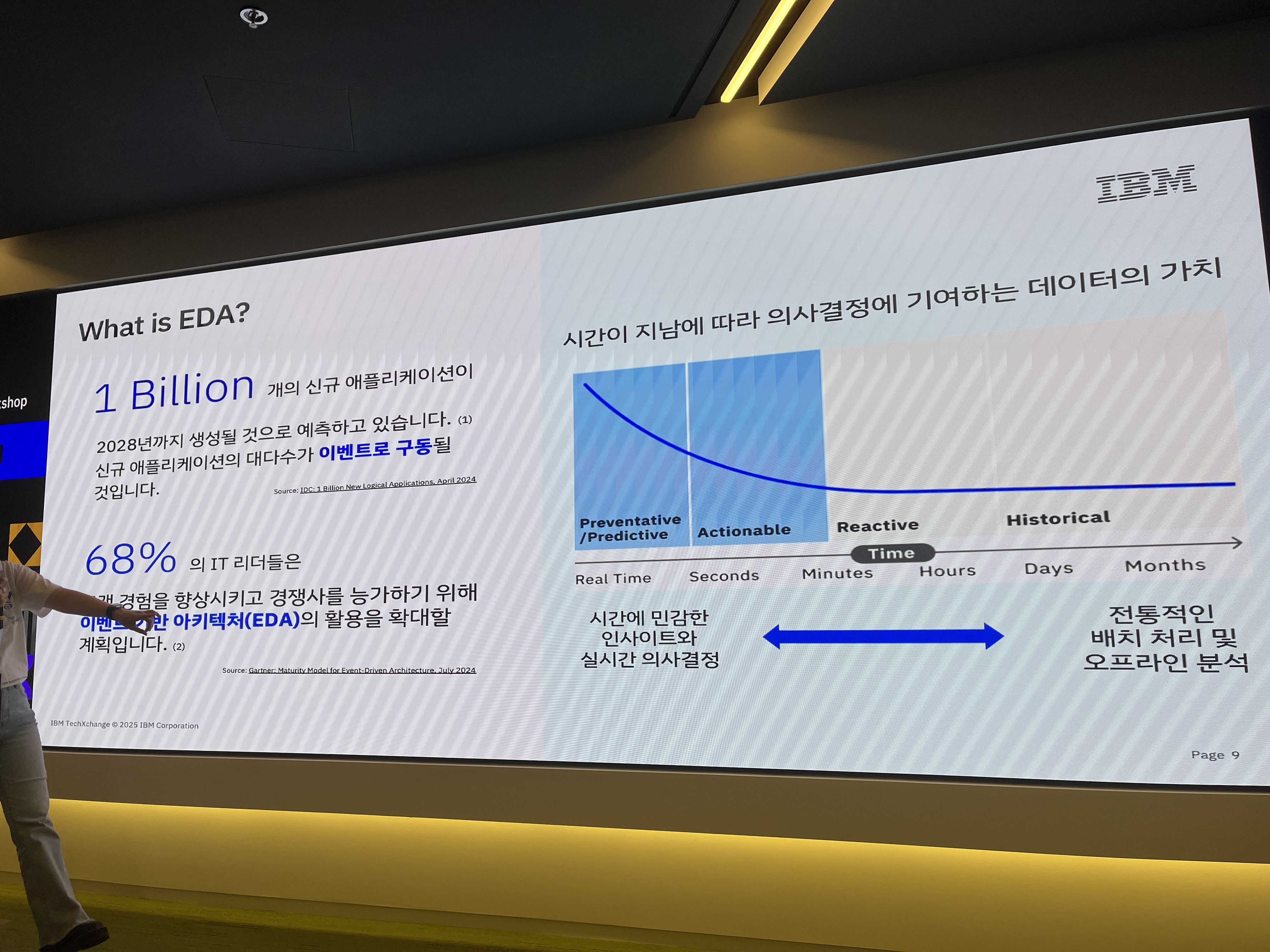 - 왜 EDA(이벤트 드리븐 아키텍처)?→ 이제는 시대가 많이 바뀌어서 AI까지 등장. 새로운 아키텍처에 맞는 구조에 대해서 생각하다 예전보다 느슨한 결합, 배치보다는 실시간 처리, 실시간 데이터 수집 및 분석 중요도가 많이 올라갔다는 것을 확인