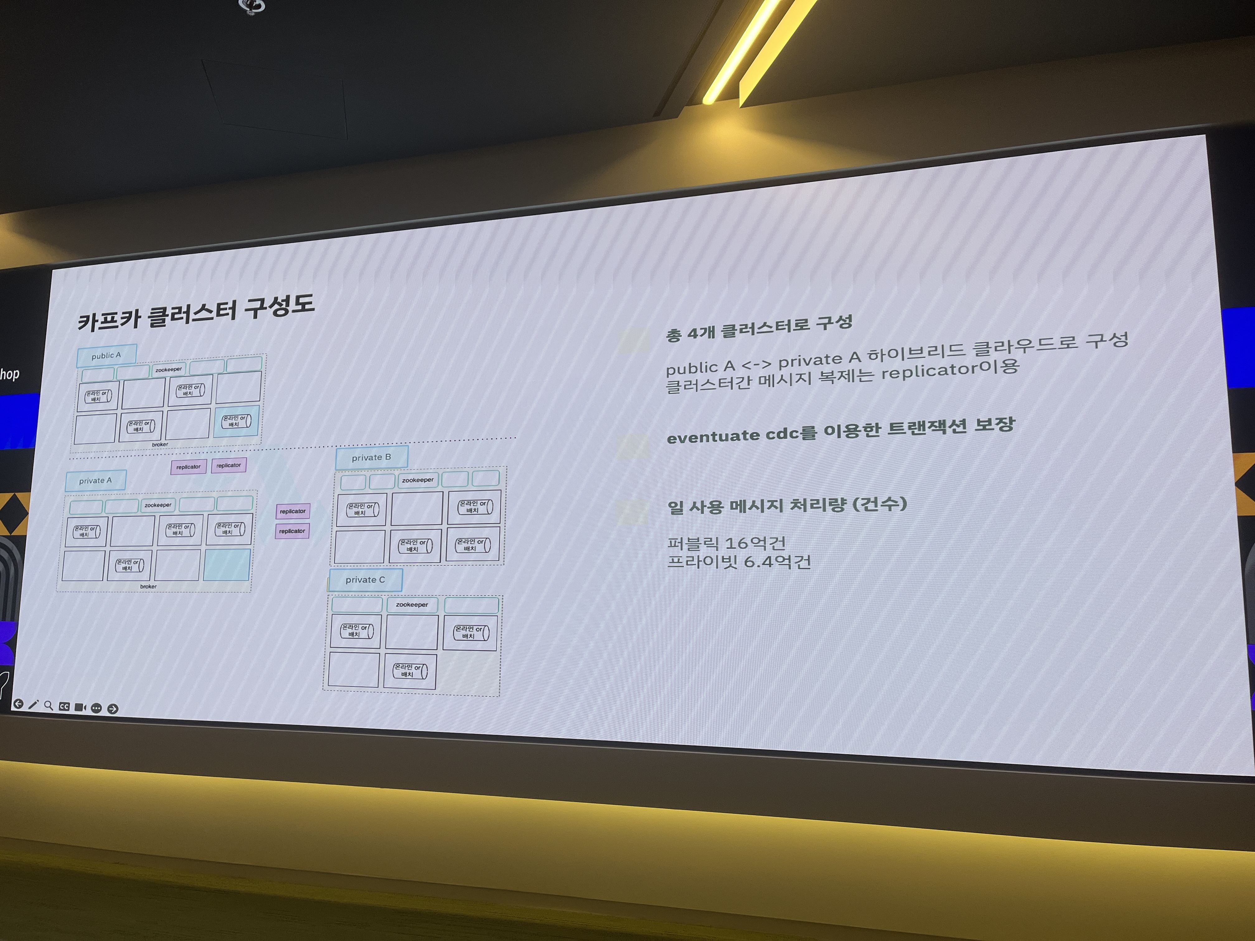 다만 예정되어있던 네트워킹시간이 아무래도 강제적이지는 않았다보니까 I성향이 짙은 개발자들이 모여서 그런가 대부분 귀가를 선택했다. 나는 좀더 다른 사람들이 어떻게 카프카를 사용하고 있는지도 들어보고 싶었는데..(물론 아무나 붙잡고 물어볼 용기는 없었음)